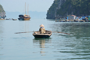 Croisière sur la baie Lan Ha ; avec ses petites plages sauvages et ses villages flottants de pêcheurs.